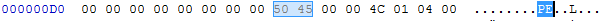 실제 000000D8에 'PE'가 보이네요 [NT Header 시작부분]