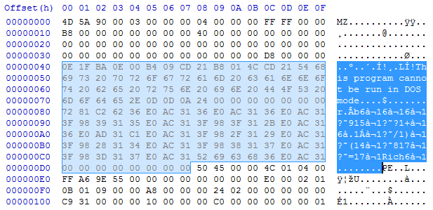 DOS Stub의 존재여부는 옵션이며 크기도 일정하지 않습니다. (없어도 파일실행과 상관없음!)