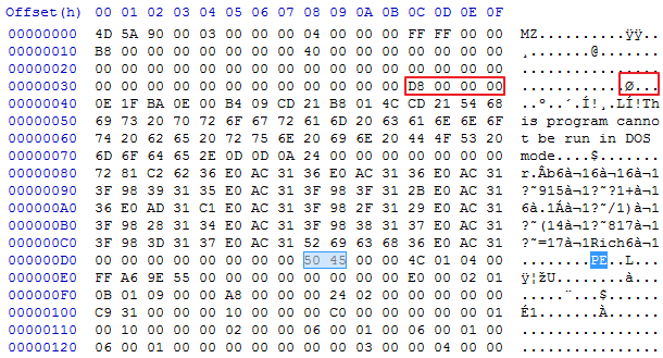 DWORD e_lfanew; /* 3c: Offset to extended header */
