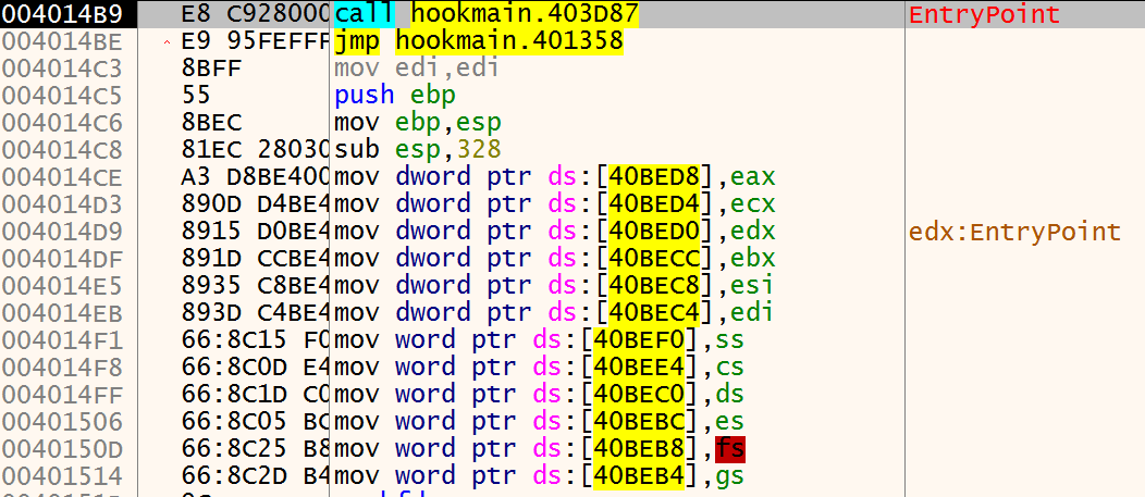 40104D에서 찾을 수 있습니다. 여기가 main()의 안이겠죠 ?